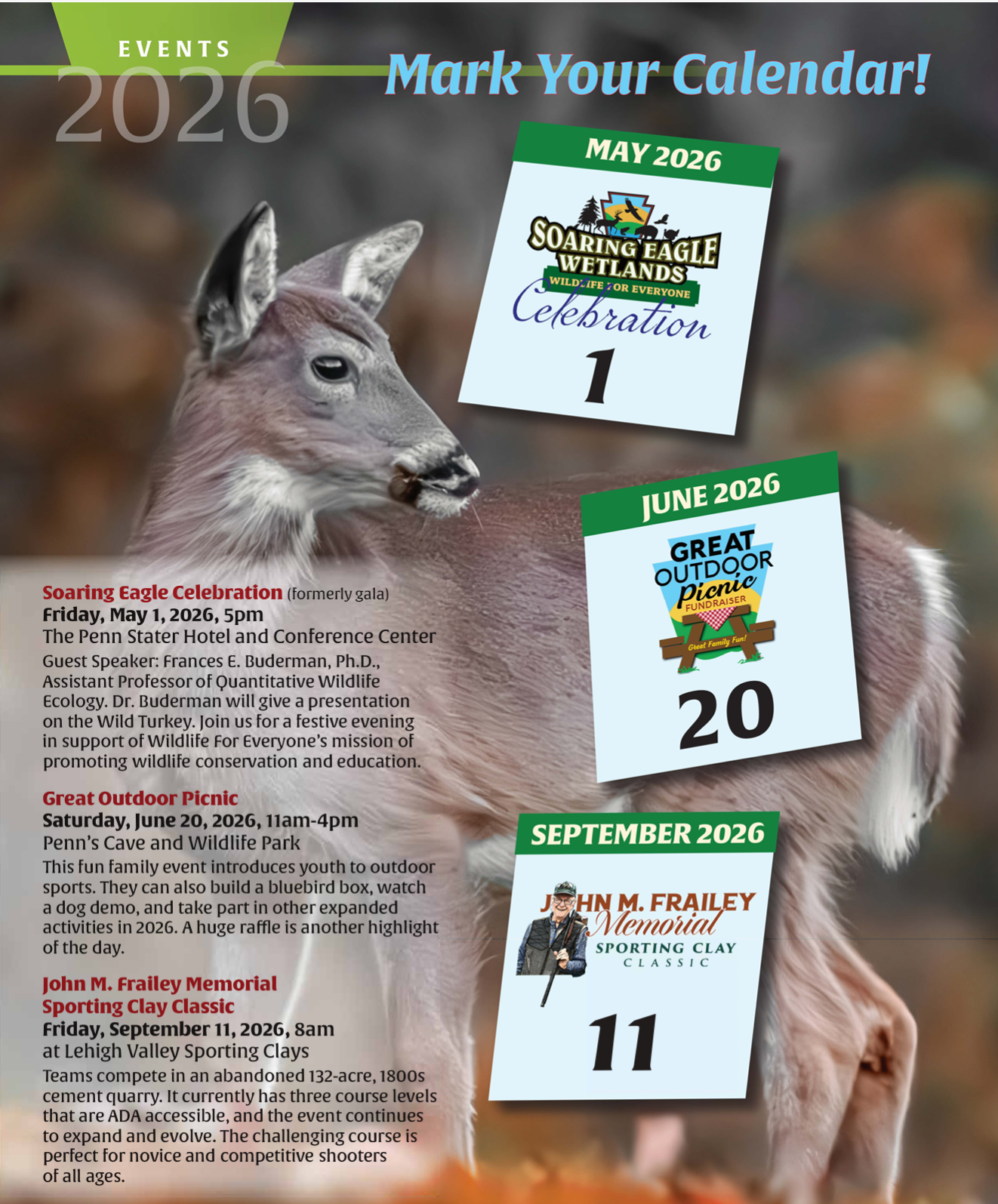 Penn's Cave supports Wildlife for Everyone Foundation! For more information on their upcoming 2026 events, please visit their webpage at: www.wildlifeforeveryone.org!