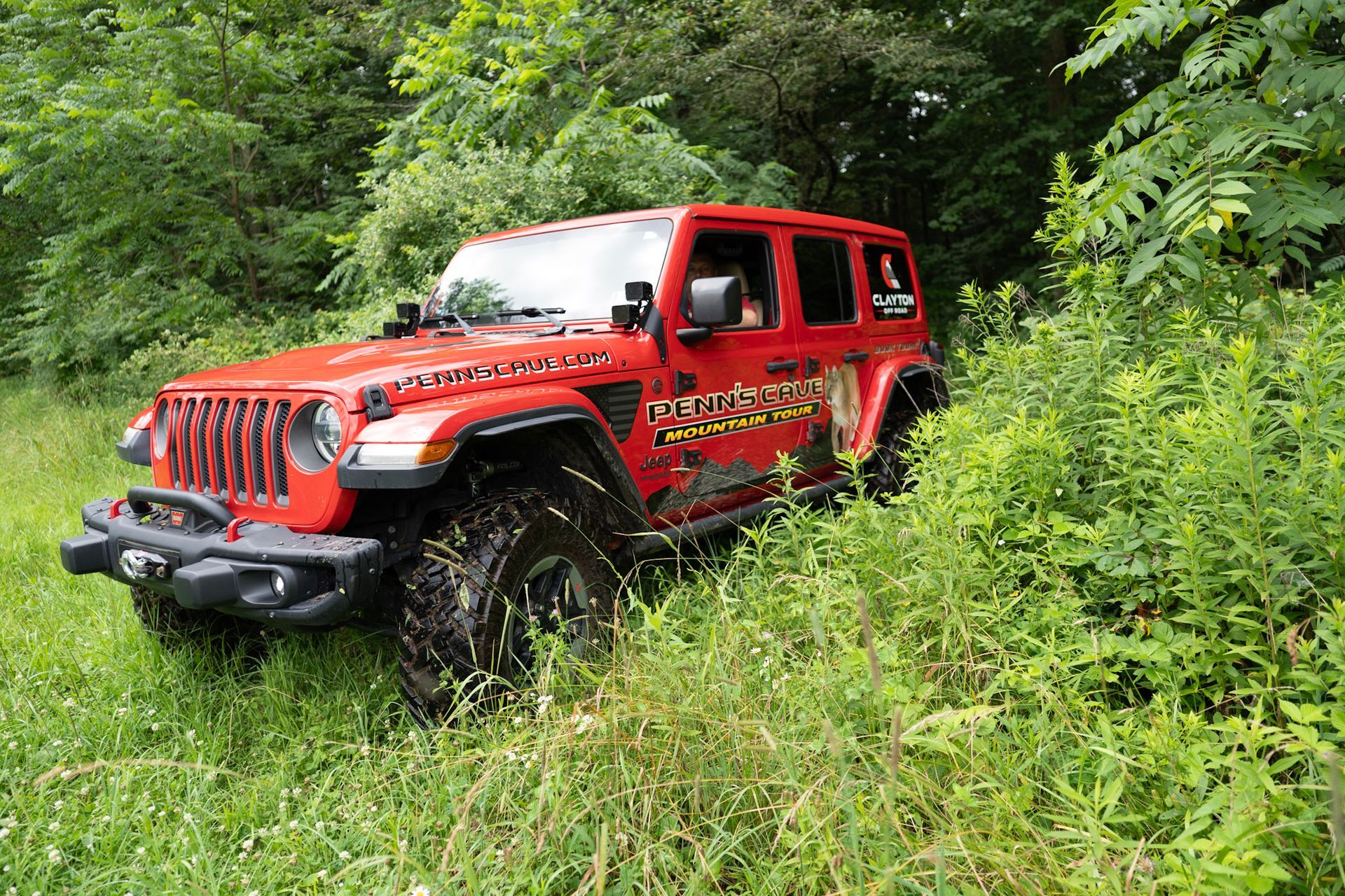 Fully guided 1.5 hour private off-road adventure tour given in Penn's Cave Jeeps by Penn's Cave guides